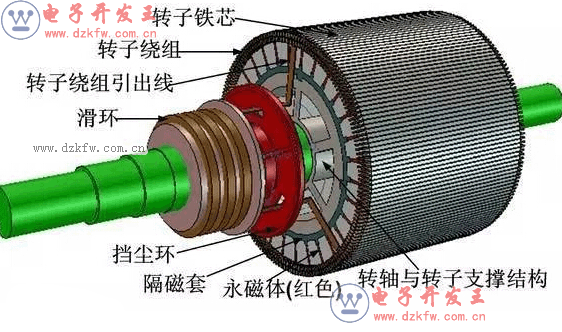 在通常情況下,與定子的銅損和鐵損相比,永磁同步電機中的轉子渦流損耗很小。但是由于轉子散熱條件不好,這些渦流損耗可能會引起很高的溫,引起永磁體局部退磁,特別是燒結NdFeB具有較大電導率和較低的居里溫度。在一些高速或高頻永磁同步電機中尤為嚴重。