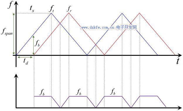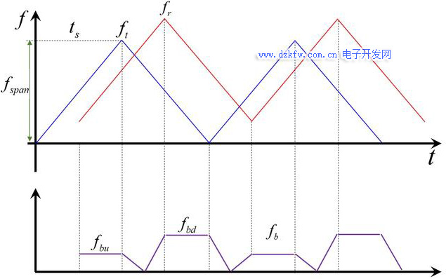 設ts為調頻波周期的一半、fspan為調頻波掃頻帶寬,根據如圖有如下關系: