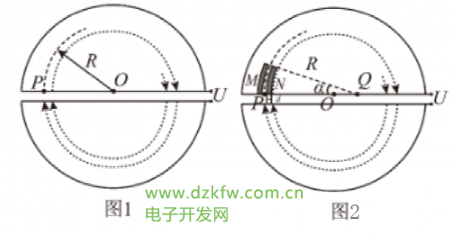 如下圖 1 所示,回旋加速器的圓形勻強磁場區(qū)域以O(shè)點為圓心, 磁感應(yīng)強度大小為B,加速電壓的大小為U、質(zhì)量為m、電荷量為q的粒子從O附近飄入加速電場,多次加速后粒子經(jīng)過P點繞O做圓周運動,半徑為R,粒子在電場中的加速時間可以忽略。為將粒子引出磁場,在P位置安裝一個“靜電偏轉(zhuǎn)器”,如圖2所示,偏轉(zhuǎn)器的兩極板M和N厚度均勻, 構(gòu)成的圓弧形狹縫圓心為Q、圓心角為α,當M、N間加有電壓時,狹縫中產(chǎn)生電場強度大小為E的電場,使粒子恰能通過狹縫, 粒子在再次被加速前射出磁場, 不計M、N間的距離。求:(1)粒子加速到P點所需要的時間t;(2)極板N的最大厚度dm ;(3)磁場區(qū)域的最大半徑Rm 。