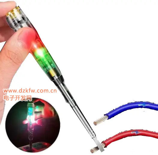 維修電工使用的低壓驗電筆又稱測電筆 ( 簡稱電筆 ) 。電筆有鋼筆式和螺釘旋具式兩它們由氖管、電阻、彈簧和筆身等組成。驗電筆使用時將筆尖觸及被測物體,以手指觸及筆尾的金屬體,使氖管小窗背光朝自以便于觀察。如氖燈發(fā)亮則說明設備帶電,燈愈亮則電壓愈高,燈愈暗則電壓愈低。
