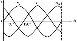 這稱為三相電動勢,三相交流電出現正幅值的順序稱為相序。三相電動勢幅值相等、頻率相同、彼此間相位差相等。這種電動勢稱為對稱電動勢。