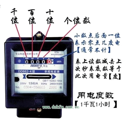 上圖紅框中標(biāo)示的部分是電表的讀數(shù)位置,讀數(shù)從前到后依次是:千、百、十、個位,后面紅色部分是小數(shù)點后面的數(shù)值,看表讀數(shù)時通常不計算。