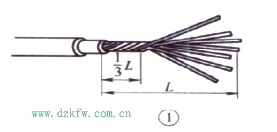 然后把余下的2/3芯線頭按圖示分散成傘 ,并將每根芯線拉直。
