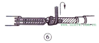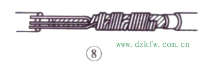 7)把余下的3根芯線按步驟⑤方法纏繞至第2圈時,把前4根芯線在根部分別切斷,并鉗平;