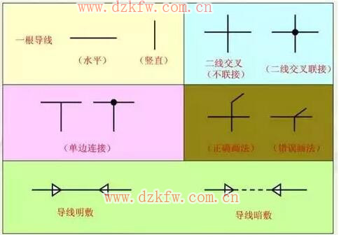 (3)導線和元器件的識別----分清圖中的動力線、電源線、信號控制線、負載等導線的線型、規格和走向,識別元器件及部件設備的型號、規格參數及在圖中的作用。