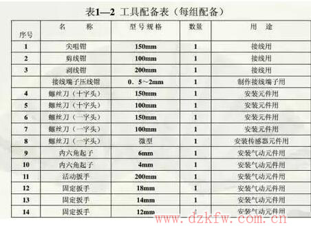 (8)、設備元件表:把成套裝置、設備和裝置中各組成部分和相應數據列成的表格其用途表示各組成部分的名稱、型號、規格和數量等。