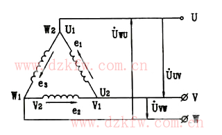 從圖中可以得知,電源連接成三角形時線電壓與相電壓的關系為:線電壓UL等于相電壓UΦ,即UL=UΦ。星形連接中的線電壓是相電壓的1.73倍。