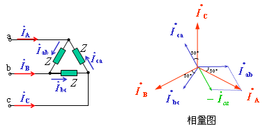 2.Δ接對稱負載線電流和相電流的關系