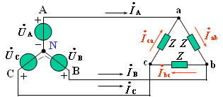 若三相負載對稱,則負載相電流也對稱。