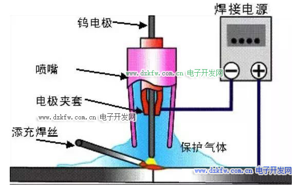 就是在電弧焊的周圍通上氬氣保護(hù)氣體,將空氣隔離在焊區(qū)之外,防止焊區(qū)高溫金屬氧化。