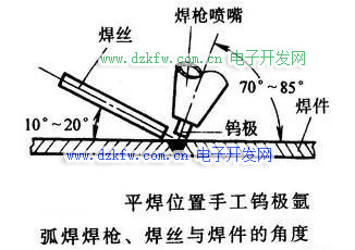 將槍嘴和被焊工件保持在70~80度夾角,焊絲保持160~170度左右夾角,既容易送絲操作,便于眼睛觀察熔池變化,也能讓氬氣保護(hù)范圍達(dá)到極至。