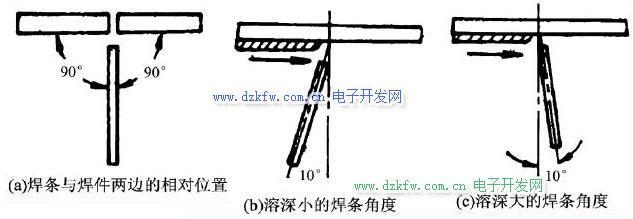 3、施焊時焊條與焊縫兩側應成90°夾角,與焊接方向保持80°~90°夾角,在整個焊接過程中,焊條要保持在上述位置均勻地運條,運條的手法可采用直線形和直線往復形。