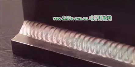 焊接鐵水隨著運(yùn)條走向先后冷卻,焊接蓋面過(guò)程中,焊縫兩邊焊接時(shí)間多于焊縫中間焊接時(shí)間,鐵水冷卻后形成左一片右一片魚(yú)鱗似的焊紋。