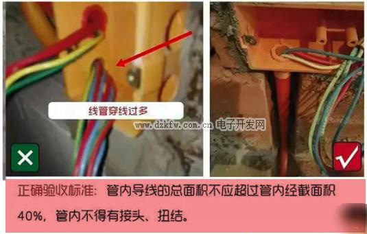 在把電線穿入線管內時,要避免穿太多的電線,截面面積不得超過線管截面的40%。并且保證線管內的電線通順。