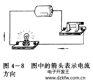 按照這個規(guī)定,在電源外部,電流的方向是從電源的正極向負極(圖4-8)。