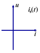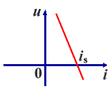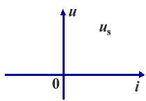 | 3)理想電流源的電壓、電流關系 (1)電流源的輸出電流由電源本身決定,與外電路無關;與它兩端電壓方向、大小無關 (2)電流源兩端的電壓由其本身輸出電流及外部電路共同決定。 伏安關系曲線如右圖示 |