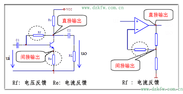 2. 反饋元件一端接直接輸出端為電壓反饋,若反饋元件一端接間接輸出 端為電流反饋。