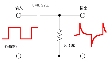 微分電路是電子線路中最常見的電路之一,弄清它的原理對我們看懂電路圖、理解微分電路的作用很有幫助,這里我們將對微分電路做一個簡單介紹。圖1給出了一個標準的微分電路形式。為表達方便,這里我們使輸入為頻率為50Hz的方波,經過微分電路后,輸出為變化很陡峭的曲線。圖2是用示波器顯示的輸入和輸出的波形。
