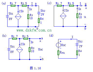 則戴維南等效電路如圖(d)。 I=(Uoc-US2)/(Req+R4)]=0.5A