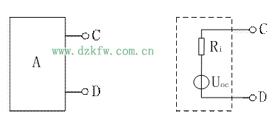 1、對任何一個線性含源一端口網(wǎng)絡(luò),如圖1(a),根據(jù)戴維南定理,可以用圖l(b)所示電路代替。其等效條件是:Uoc是含源一端口網(wǎng)絡(luò)C、D兩端的開路電壓;電阻Ri是把含源一端口網(wǎng)絡(luò)化成無源網(wǎng)絡(luò)后的入端電阻。