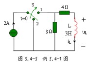 換路后,從電感兩端看進去的等效電阻是 4 Ω和 8 Ω兩個電阻串聯,即R=4 + 8=12 Ω