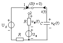 在圖1電路中,電阻、電容以及電壓源全部為已知參數(shù),開關(guān)S在t=0時(shí)刻從位置1合到位置2,開關(guān)移動(dòng)之前電路處于穩(wěn)態(tài),求換路后的電容電壓