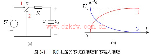 電路如圖3-1(a) 所示。設電容初始電壓為零(即零狀態的電路),當
