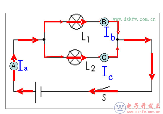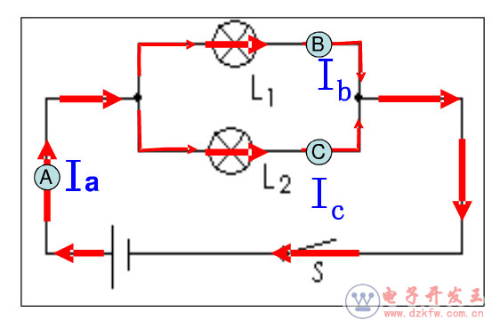 用電流表分別測(cè)電路各點(diǎn)電流:Ia,Ib,Ic