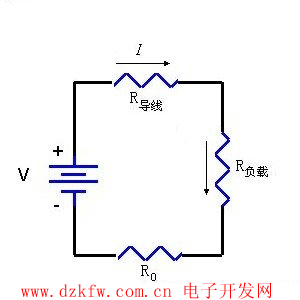 ,如圖二所示。當導線較長時,導線電阻與負載電阻和電源內阻相比,就不能忽略不計了。這時回路電流就與回路總電阻