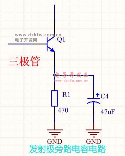電容并電阻不管在強電電路中還是在弱電電路中都能夠見到這種連接方式。下面我先說一下在電子電路中常見的電容并聯電阻環節的作用。我們經常會看到在以三極管組成的放大電路中,在三極管發射極回路中都要串接一只阻值不是很大的電阻,常常會在這只電阻的旁邊并聯一個電解電容,如下圖所示。