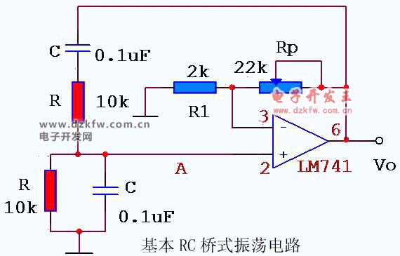 我們在學習模擬電路中,會接觸到振蕩電路時,會接觸到RC正弦波震蕩電路,如上圖所示,其中就有RC組成的選頻回路,上面的這個電阻R和電容 C就起到選頻振蕩的作用了,其振蕩頻率為f=1/2πRC,我們也叫它RC橋式振蕩電路。