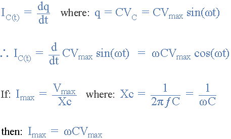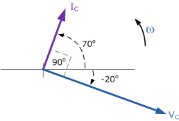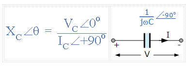 其中: I C = V /(1 /ωC)(或 I C = V / X C )是電流幅度,θ= + 90 o 是相位差或電壓和電流之間的相角。對于純電容電路, Ic 導致 Vc 90 o ,或 Vc 滯后 Ic