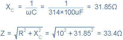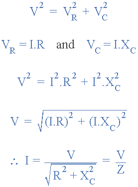 這意味著流入電容器的電流仍將導通電壓,但是數量小于90 o 取決于值 R 和 C 給出一個相量和,它們之間的相應相位角由希臘符號phi,Φ給出。