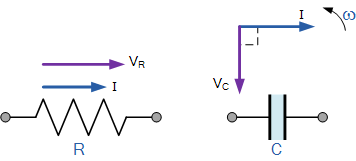 為了能夠產生AC電容的矢量圖,參考或公共分量必須是找到。在串聯AC電路中,電流是常見的,因此可以用作參考源,因為相同的電流流過電阻并流入電容。純電阻和純電容的單個矢量圖如下: