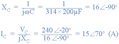 電壓兩端的電壓電容器與電源電壓相同。將此時域值轉換為極坐標形式可以得到: V C =240∠-20 o (v)。容抗將為: X C = 1 /(ω.200uF)。然后,使用歐姆定律可以找到流入電容器的電流: