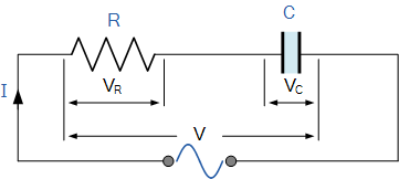 考慮下面的串聯RC電路,其中歐姆電阻 R 與純電容串聯連接, C 。