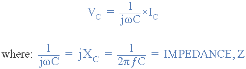 純凈交流電容電路,電壓和電流都是“異相”,電流導通電壓90 o 我們可以通過使用助記符來記住這一點<跨度>“ICE” 。稱為阻抗(Z)的電容器的交流電阻值與頻率有關,電容器的電抗值稱為“容抗”, X C 。在 AC電容電路中,此容性電抗值等于 1 /(2πC)或 1 /(jωC)