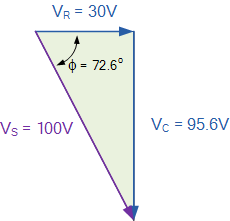這意味著那么通過使用畢達哥拉斯定理,電壓和電流之間的負相角θ計算為。