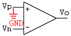 ∵ Vin = Vp - Vn 且 Vout = A × Vin(A:為放大倍數)