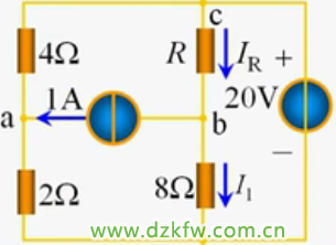對a點用結點電壓法:(1/2+1/4)Ua-1/4Uc=1,又因為Uc=20V,Ua=8V,uab=0V,則Ub=Ua=8V,所以I1=8V/8Ω=1A(電壓降落到0)