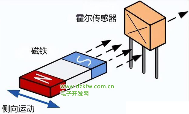 當磁場在固定氣隙距離內穿過霍爾元件的表面時,側向或滑過檢測對于檢測磁場的存在很有用,例如,計算旋轉磁鐵或電機的旋轉速度。