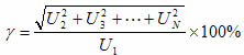 式中U1為基波分量電壓有效值。U2,U3,…,UN分別為二次、三次……N次諧波分量電壓有效值。