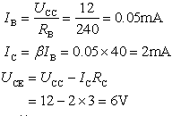 【例2】共發(fā)射極基本放大電路如圖所示,已知UCC=12V ,RC =3KΩ,RL=3KΩ,RA=24KΩ晶體管的β=40 。