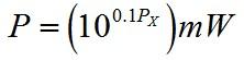 也可以根據功率電平值求出電路的絕對功率值,以dBm為例,設一功放電路的功率電平等于Px(單位dBm),則其絕對功率P等于