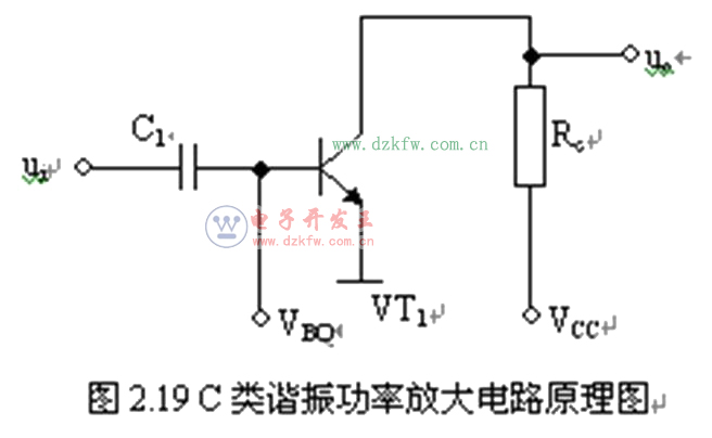 用LC并聯回路取代電阻Rc,所組成的電路稱為C類LC諧振功率放大電路。它由三極管VT1、LC并聯諧振回路、輸入信號耦合電容C1、基極偏置電壓UBQ和集電極偏置電壓VCC組成。