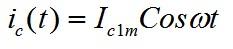 脈動性電流ic如圖所示,用Icmax表示脈動電流的峰值。通過LC回路的選頻作用,可從脈動電流中選出基波信號![]()