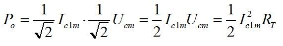 放大電路信號輸出功率等于集電極信號電流有效值與集電極信號有效值的乘積,可以求得輸出功率Po為