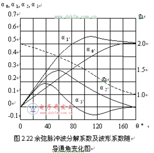 曲線g1表示基波分量與直流分量比值Ic1m/Ic0隨導通角變化的情況