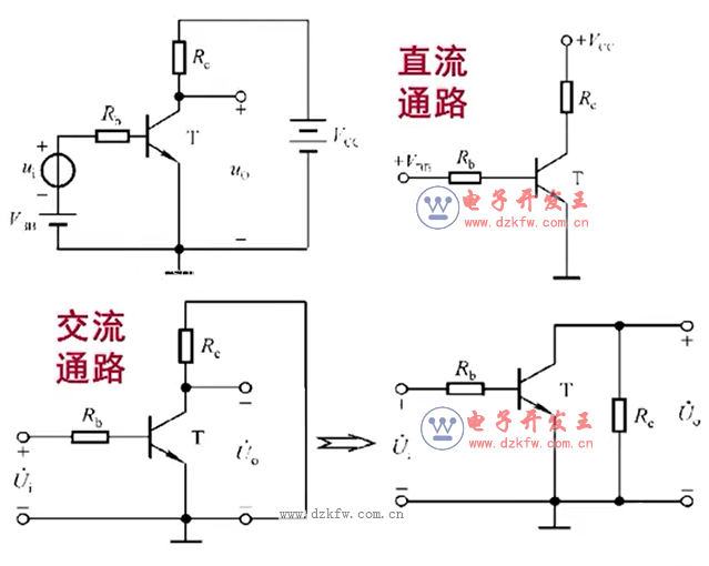 2,在輸出回路中,靜態工作點既應在IB=IBQ的那條輸出特性曲線上,又應滿足輸出回路方程uCE = Vcc –ic*Rc。