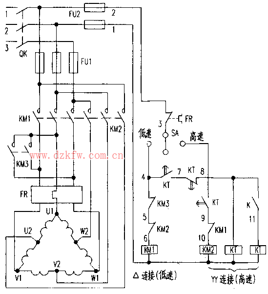 一、用接觸器控制的雙速電動(dòng)機(jī)調(diào)速電路
